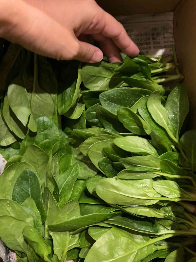 第2陣に遅めに植えたサラダほうれん草がやっと間引き菜サイズになったので実家からもらってきました。