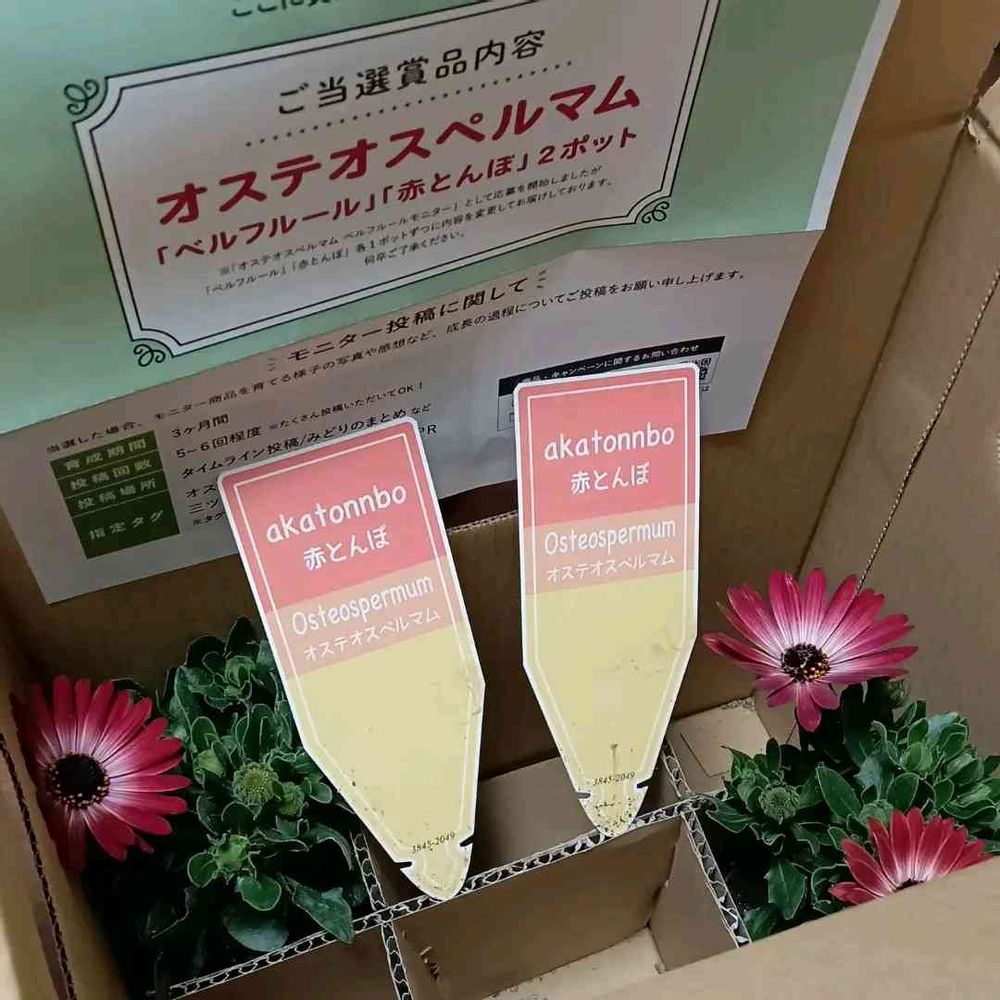 本当はベルフルールという八重咲きのオステオも届くはずでしたが、なにかの手違いで赤とんぼ2株届きました( 'ᢦ' )