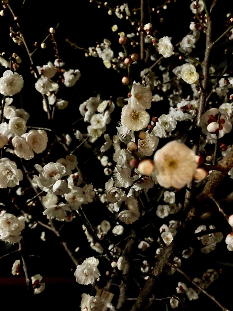 昼間見る満開の梅とはまた違う雰囲気で梅の花の精のよう。