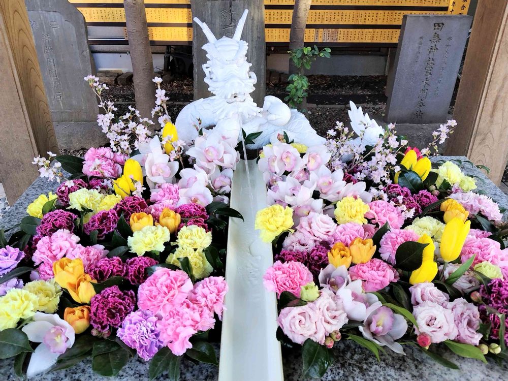 ハッピーフライトさんの手水舎,神社,季節の花の投稿画像