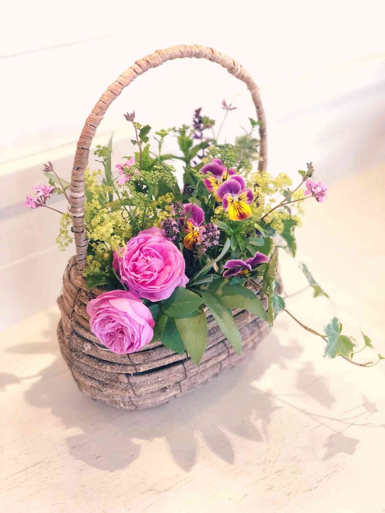 雨☔️が続いて株元にカビが発生してきたのでお手入れと剪定した花達でカゴにアレンジしました。イタリアンパセリの花芽(蕾)がイイ味だしてます。