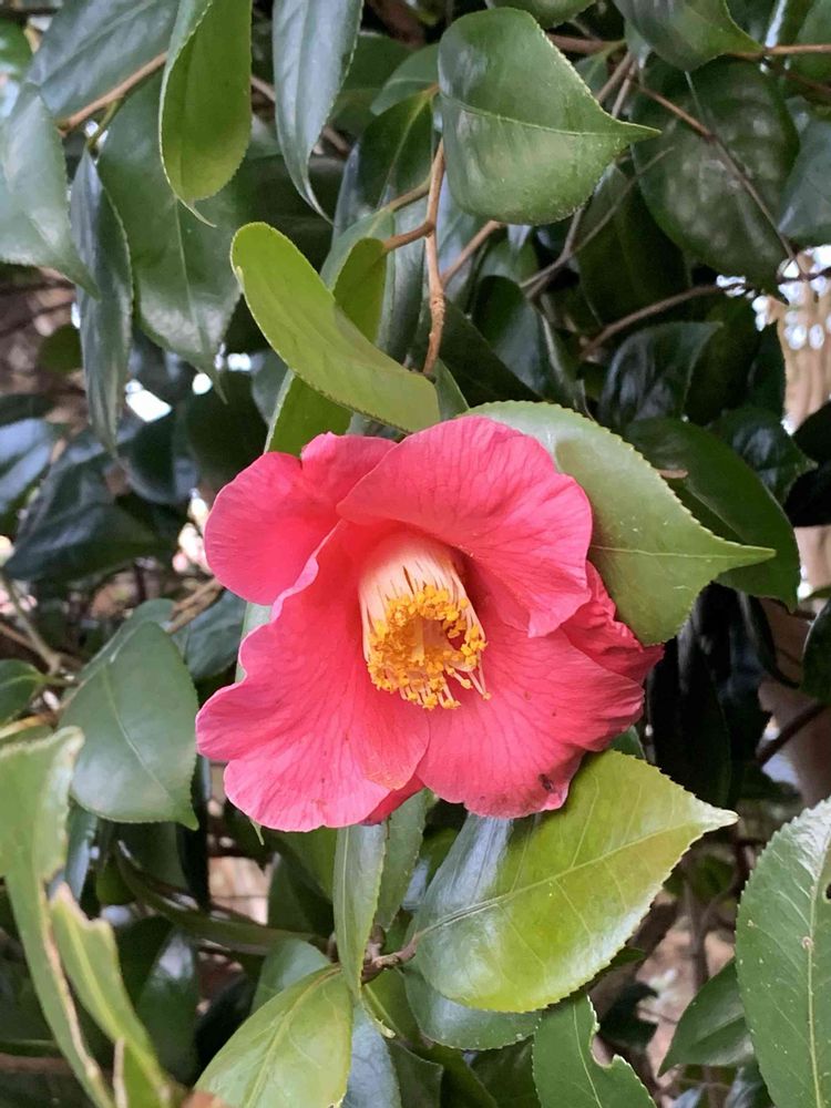 最も椿らしい椿、ヤブツバキが咲き始めました。
