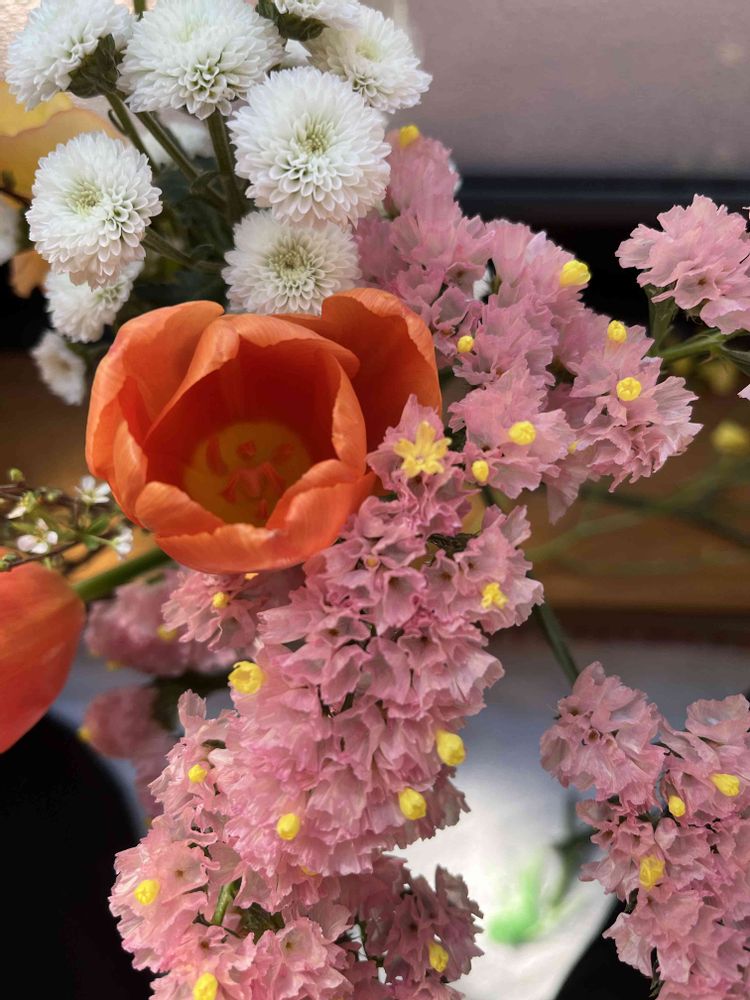 みゆうさんのスイートピー,スターチス,チューリップの投稿画像