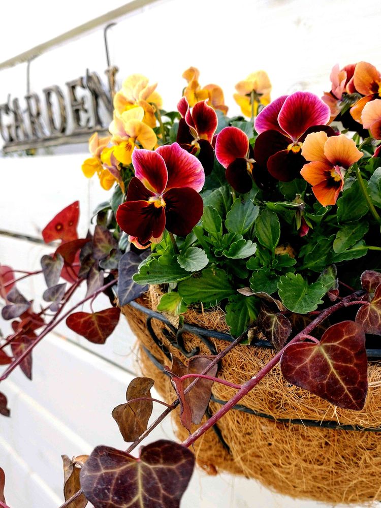 今日もお天気で☺️朝から庭をうろちょろしていました🐜💨暖色系のビオラハンギング🤎