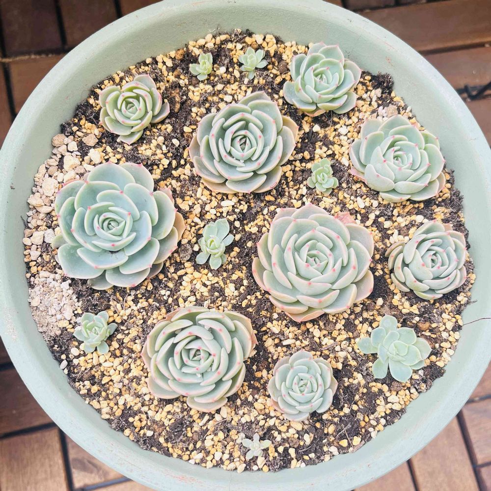探しても探してもなかなか見つからず、ようやく見つけて購入できた1つの株から凄まじい数の子株を出してくれ、一度頭と周りの子株をカットしたのにすぐに子株だらけになり放置しておりました💦
