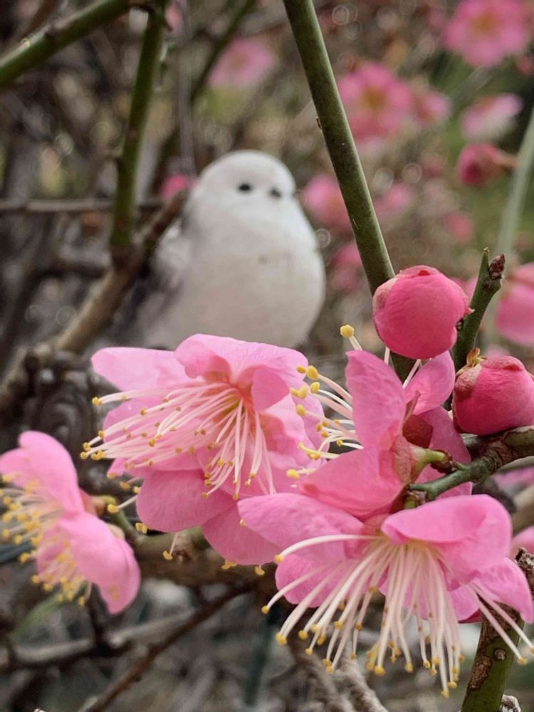 紅梅さんのピンクとシロエナガちゃんの白が合うなと🩷🩷