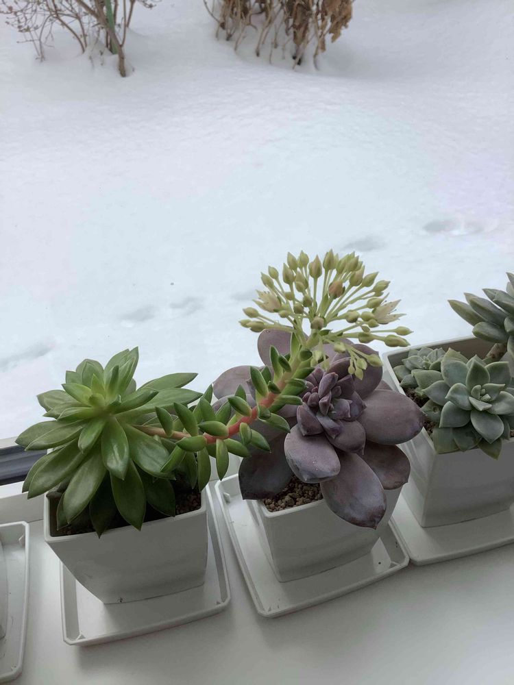 さん 今日もたくさん降りましたね⛄️とても小さな花ですが癒されます💕