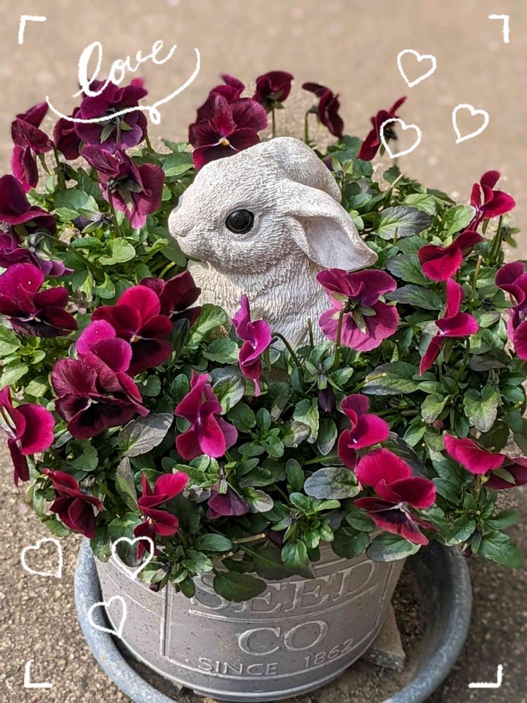①パンジー&ビオラの中にウサぴょん🐰❣️🏷ウサぴょん祭り