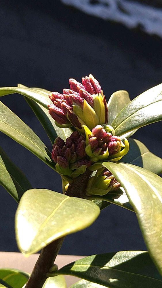 3ー今日のお花沈丁花はまだまだ硬い蕾です💮