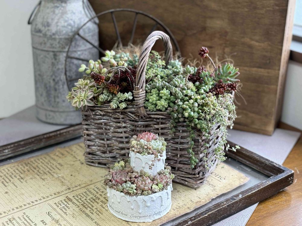 今月は、ケーキ鉢🎂に姫秀麗植えるのと、バスケットの寄せ植え🌿
