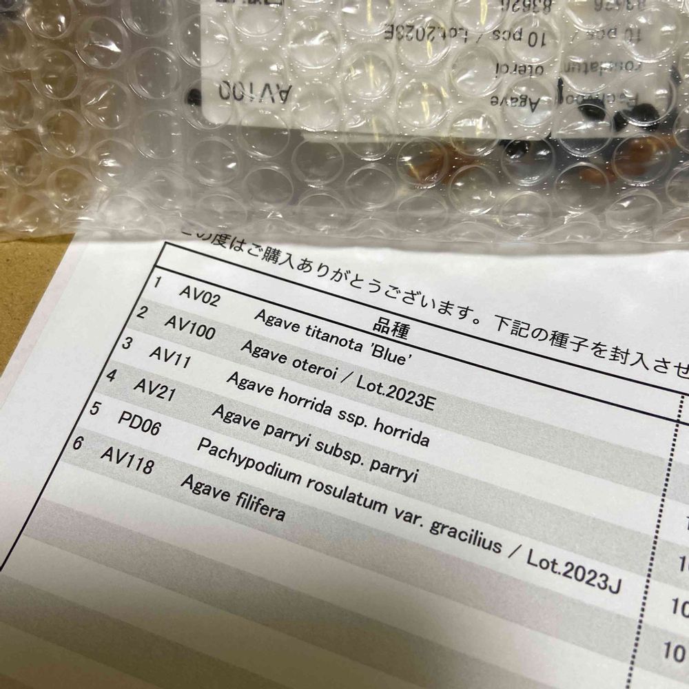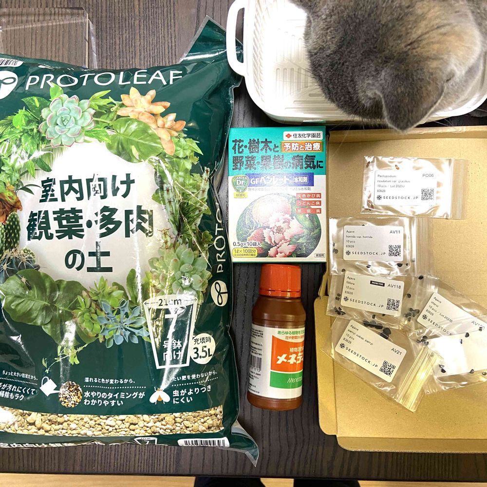 SEEDSTOCKで買った種にオマケのアガベがついてたので、6種類植えます。