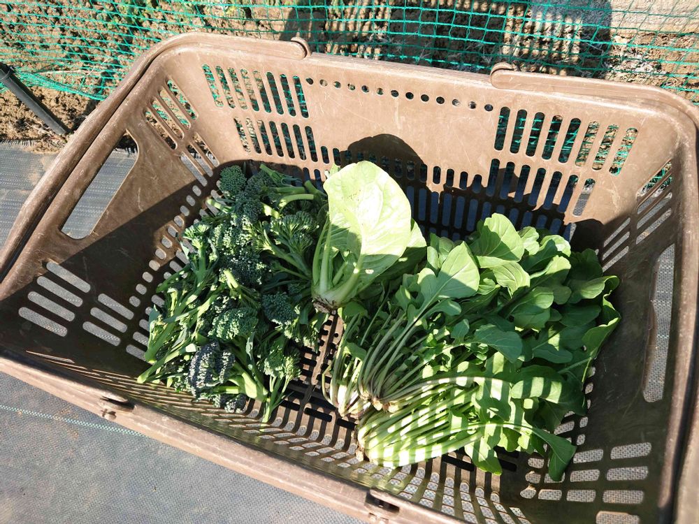 今日の収穫です🥬ブロッコリー(スティックセニョール)、ルッコラ、大和菜です。厳冬期の葉物にはビニールトンネルをかけて保温します。3ヶ月程はかかってしまいますが、満足なサイズに成長しますのでオススメです。冬こそ葉物のチャンスと思っています。