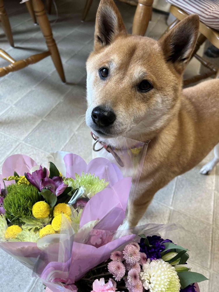 やさしい眼差しのサスケさんと花束💐に感謝🤣🤣🤣✌️