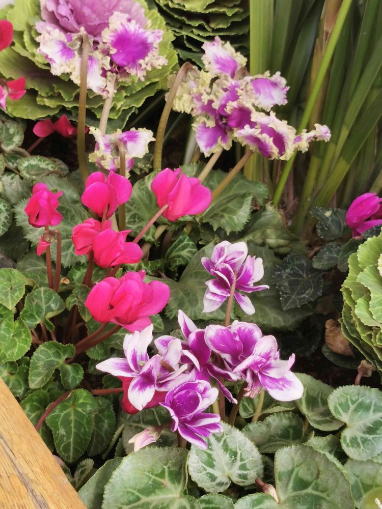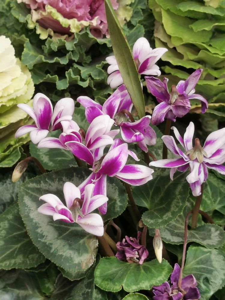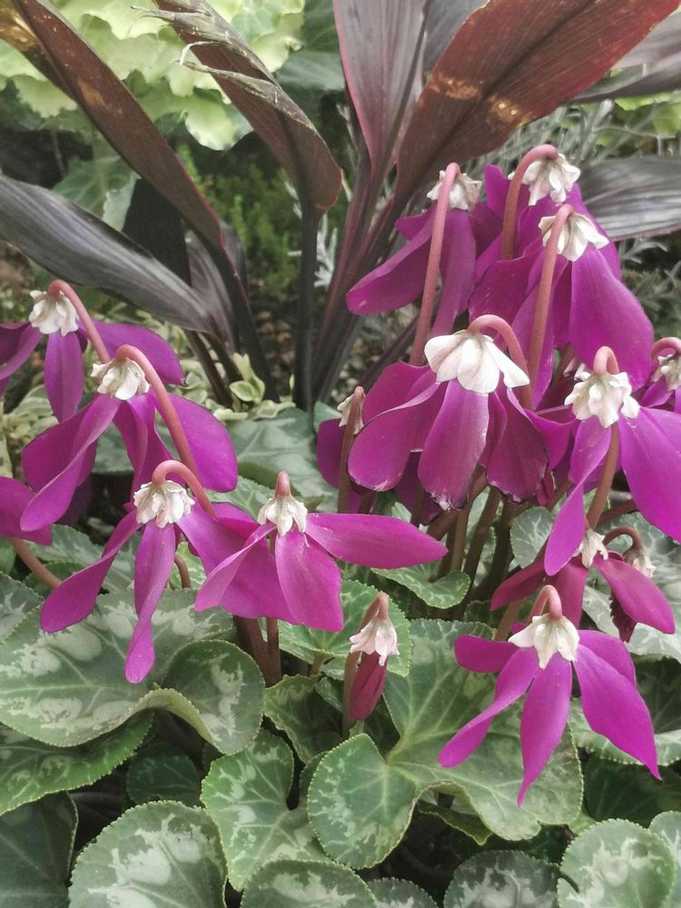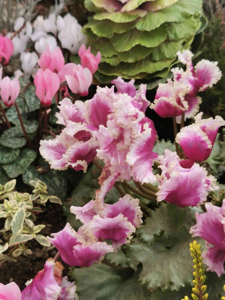 さいたま新都心駅の広場の花壇には珍しいシクラメンがたくさん、咲いていました。