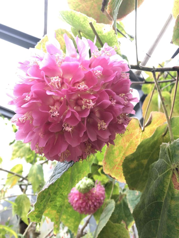 昨日、大船フラワーセンターのグリーンハウスの中で、ドンベア ワリッキーという、ピンクの紫陽花を吊るしたような花が咲いていました