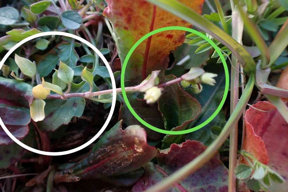 ハコベの葉っぱに見えますが。花が開いている時に撮って頂くと分かり易いかと思います