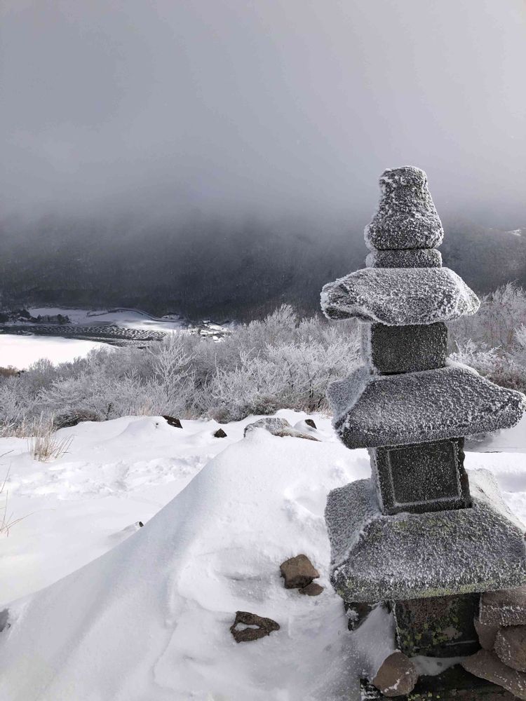 石の塔にまで霜が付いて、厳しい寒さが伝わってきますね~😯