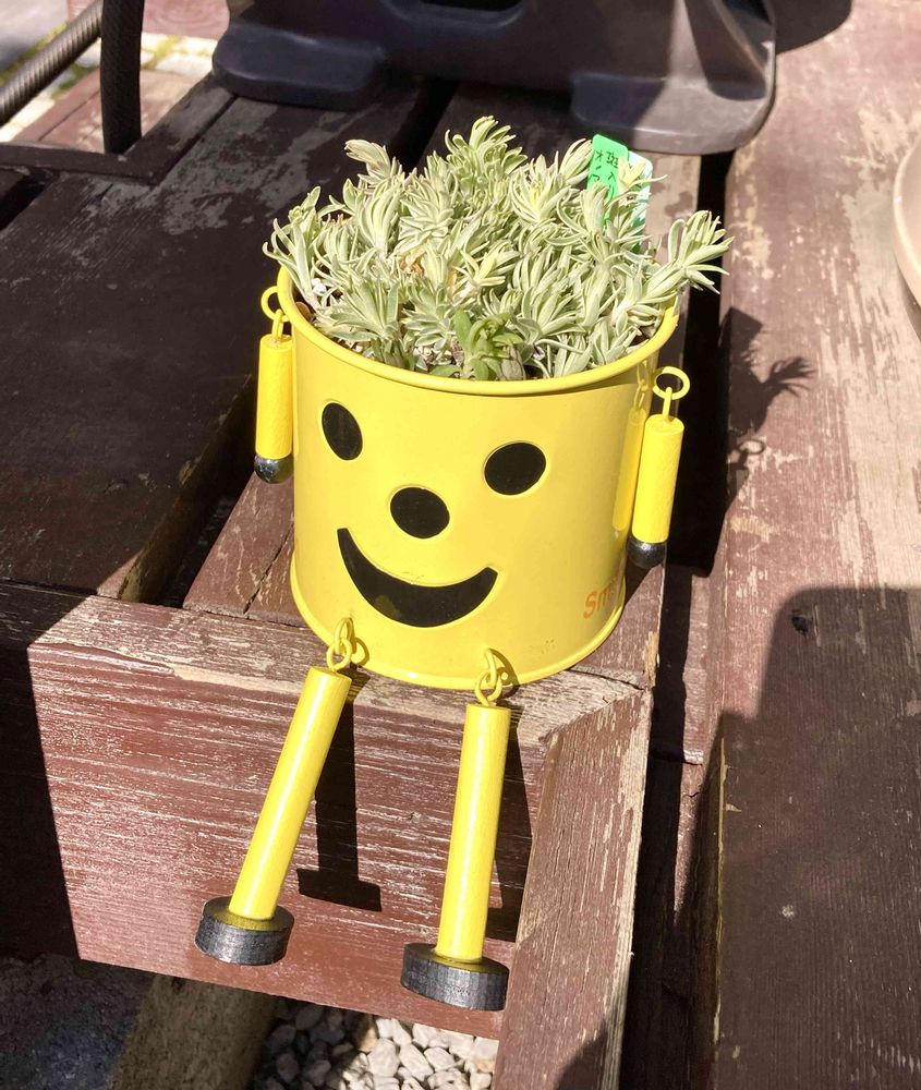 けいこさんにいただいた、黄色いブリキマン君の鉢。