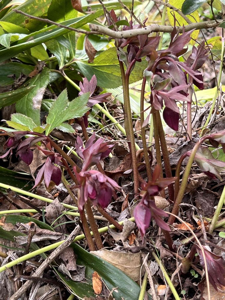 地植えのクリスマスローズ 赤,一重の赤い花,裏庭の茎まで赤いクリスマスローズの投稿画像