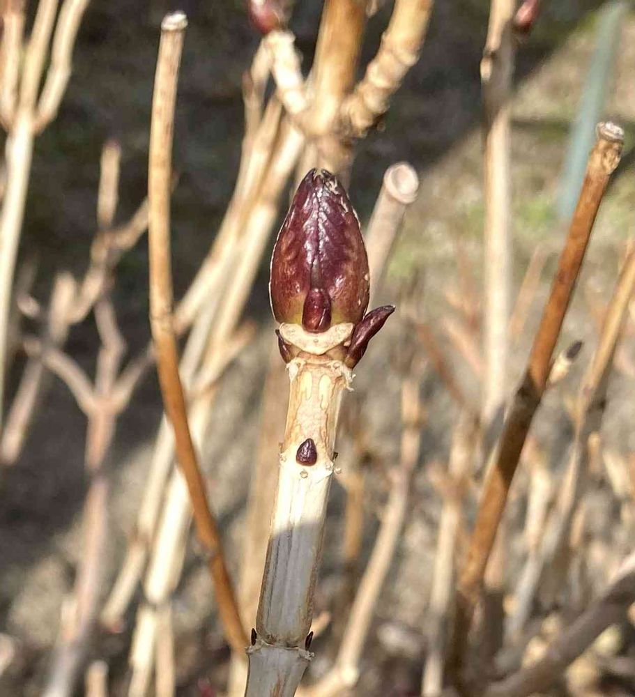 まだまだ寒い2月の新潟で、アジサイは新芽を出す準備を始めています🌱