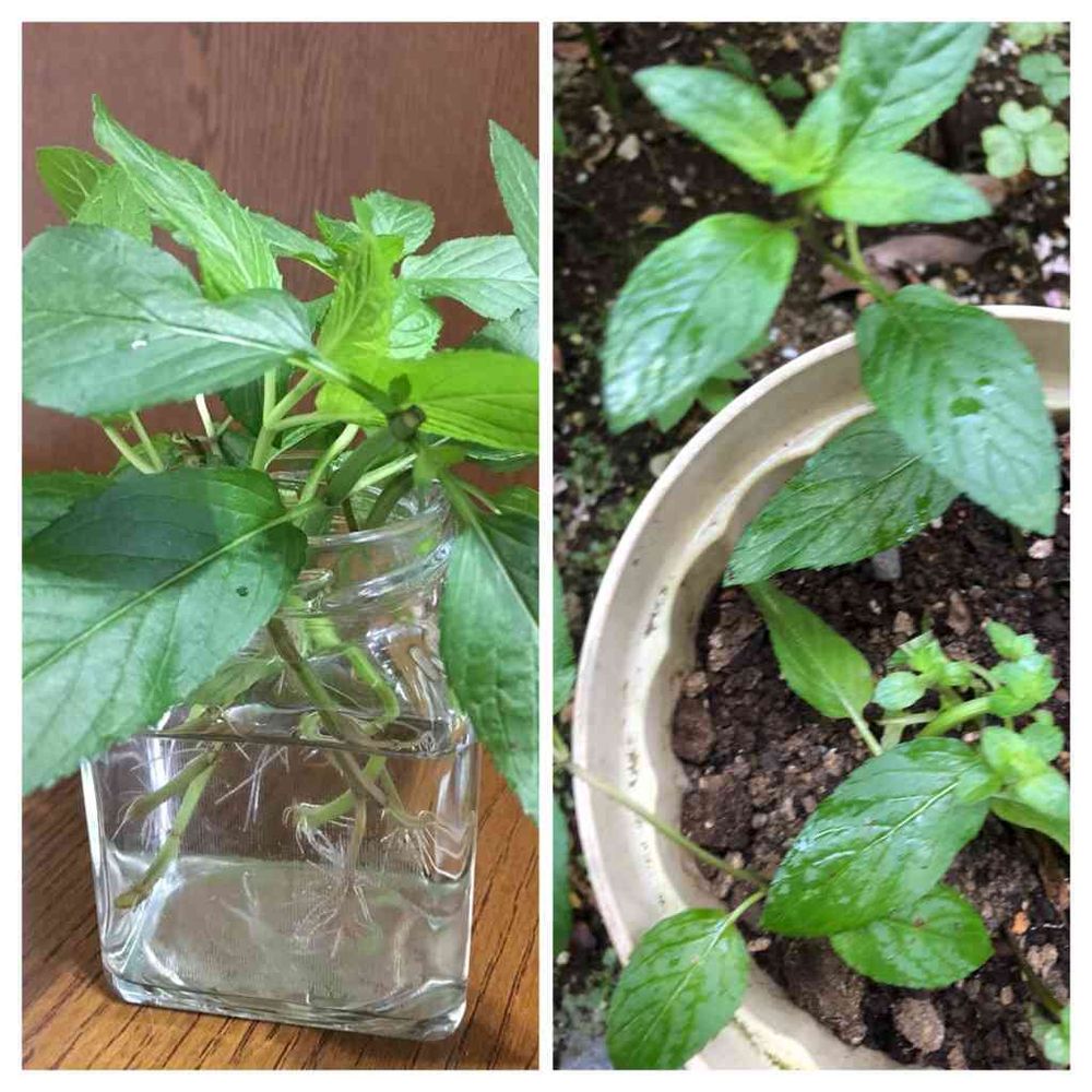 植木鉢に移したら、なんとか根付いたようです。ミントチョコの香り、🍫🌿増えるといいな😊