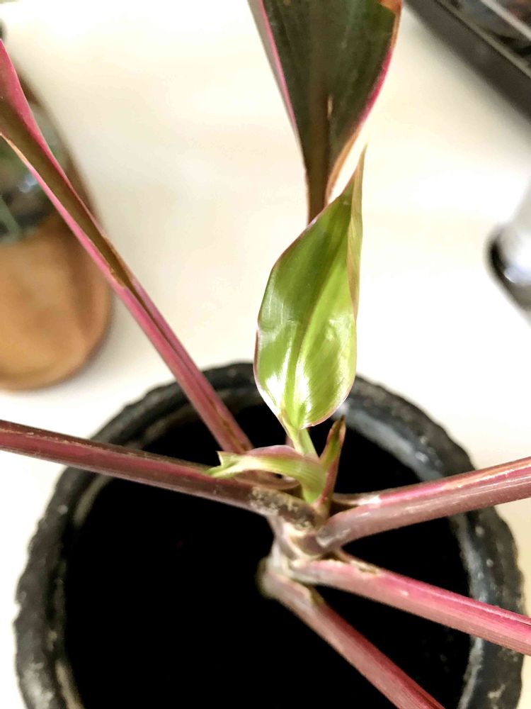 ドラセナさんの新芽🌱がやっと片方開いてくれて、、ツヤピカ✨✨