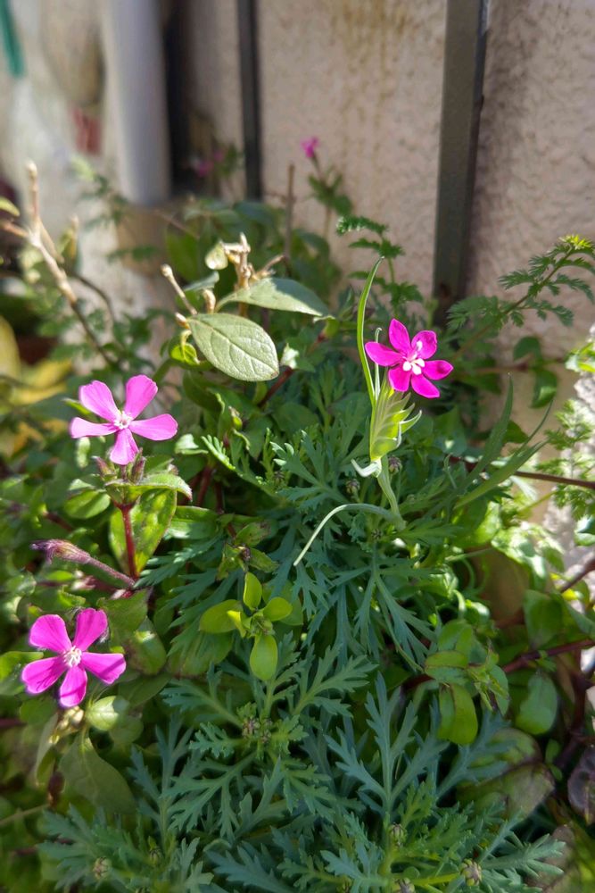 こぼれ種のシレネピンクパンサーが旺盛に伸びてきて鉢を覆ってるから、葉っぱに気付けなかった🫣