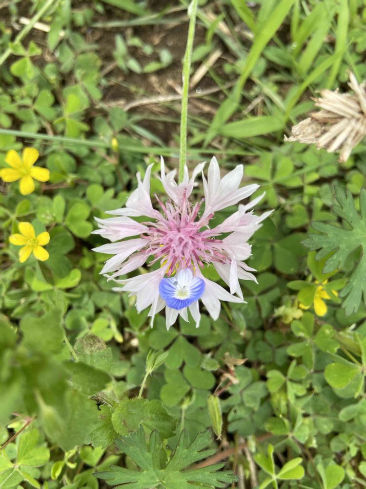 ヤグルマキクとオオイヌノフグリ、メッチャ仲良し(*^o^)/💙\(^-^*)