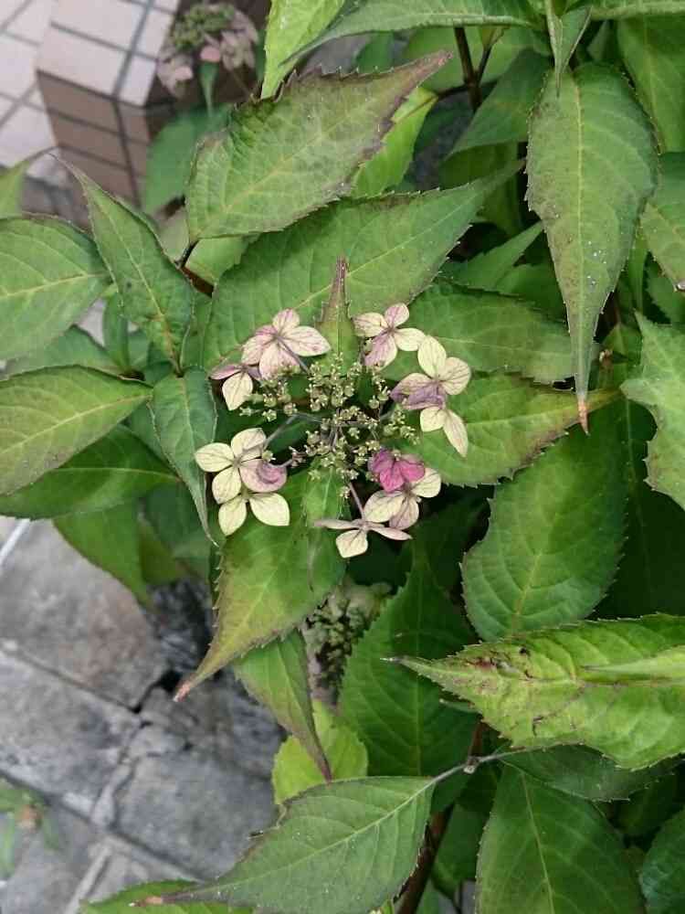 濃い赤だったヤマアジサイが渋く退色していました🌿🌼