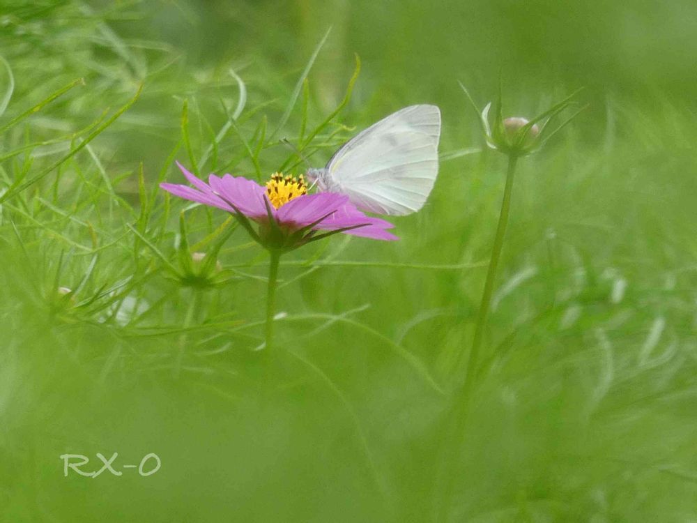 ピンクの秋桜に白いチョウ♡♡♡