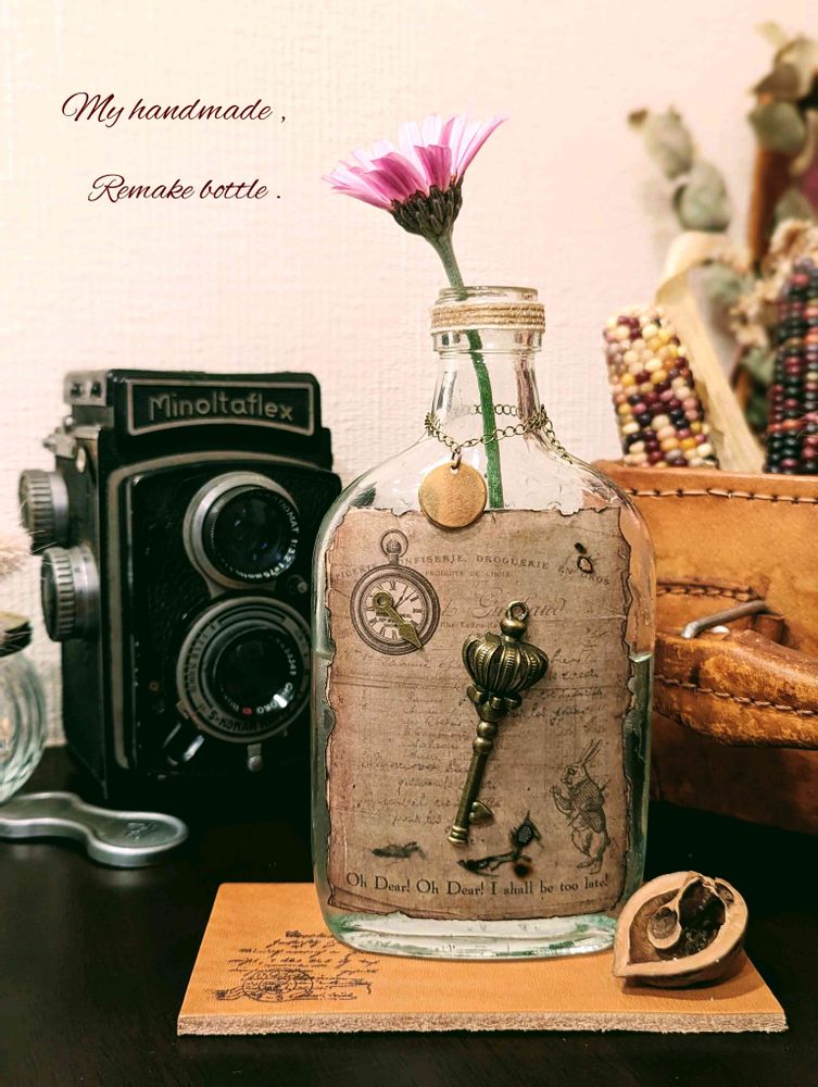 p,② ウイスキーのボトルが空いたから貰ってリメイクボトルに♩
