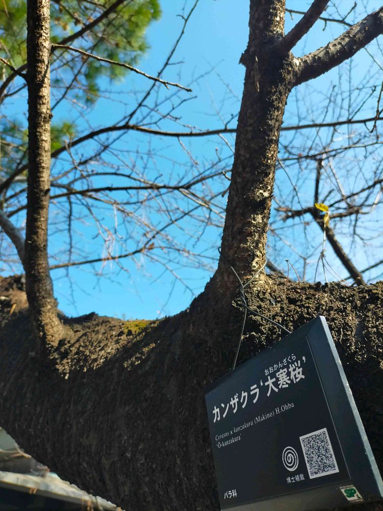 牧野記念庭園の入口真上の桜が二つだけ早くも咲いていました!🌸