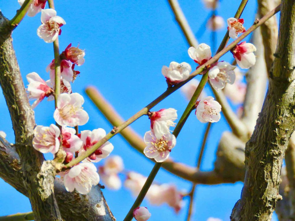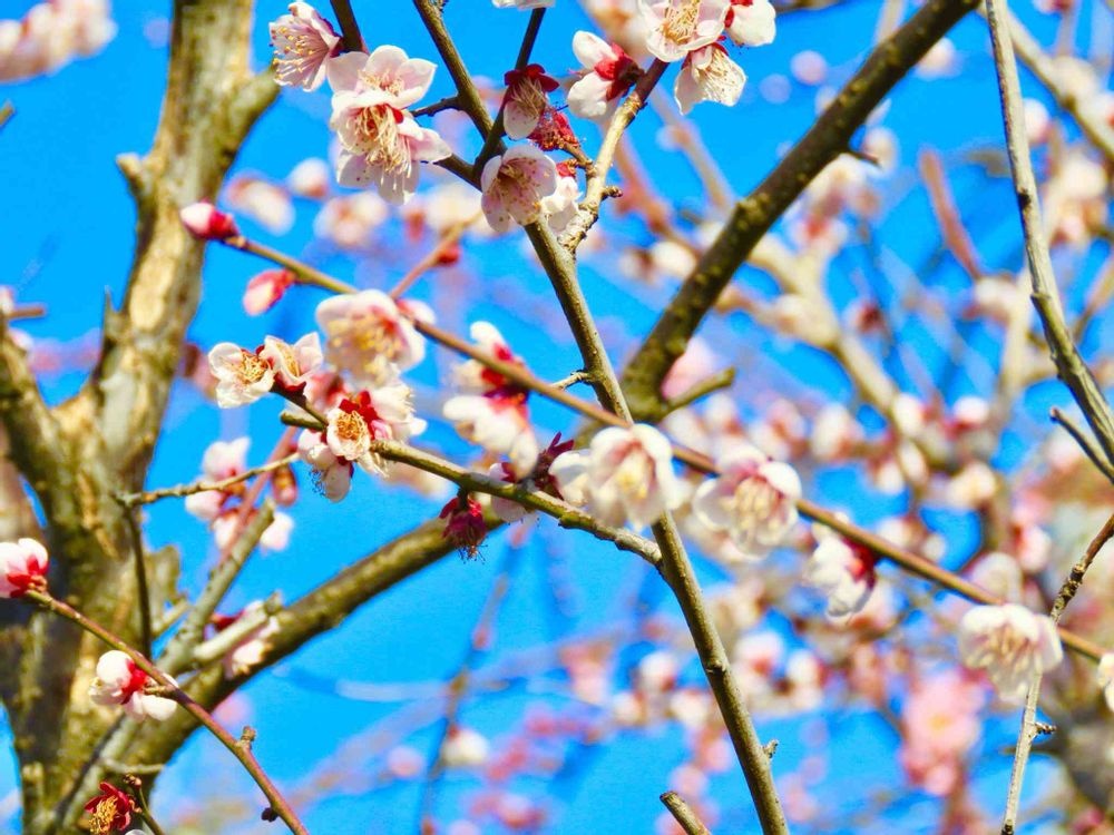 青空に映えるちっちゃな梅の花がたくさん咲いて元気モリモリですね🌸🌸🌸✨