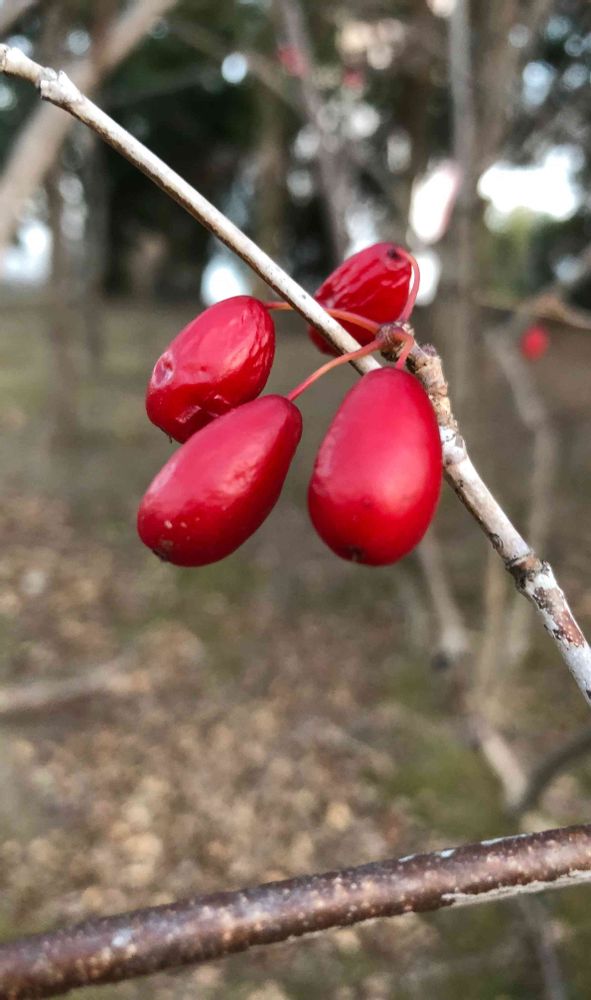 今年1月9日に「サンシュユ」の赤い実📍をパチリ!📸😊🤗🌞✌️