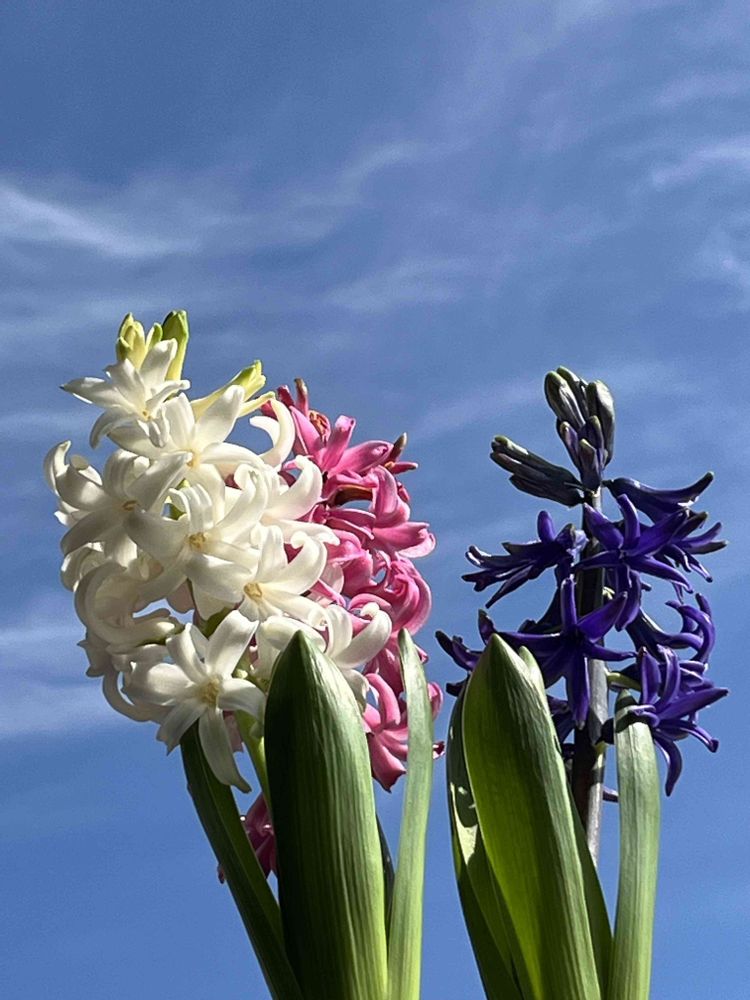 青空に綺麗なヒヤシンス🪻が映えてます😆👍✨