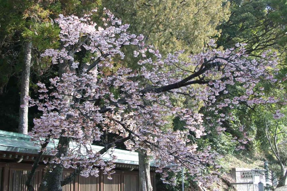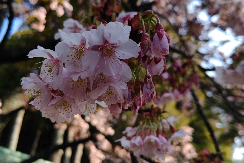 合格桜の花がほぼ満開、下を向いた花がかわいい