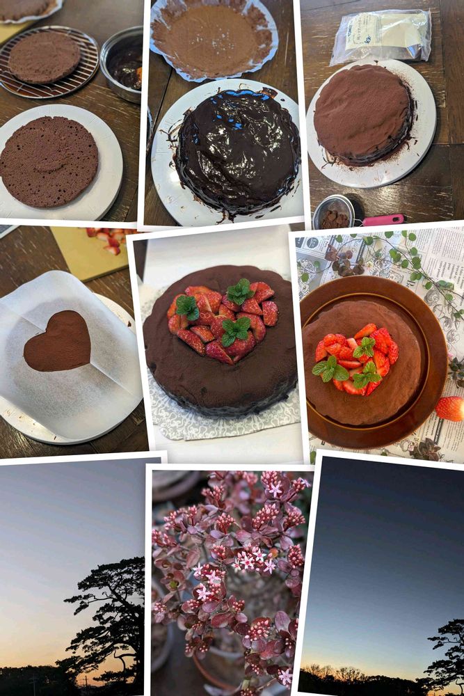 Googleフォトが「月曜日の記録」と題してコラージュしてくれました🍀😊✨2024年2月12日㈪ 昨日、お友達とバレンタインケーキ🍫を作りました(๑´ڡ`๑)ザハットルテに🍓イチゴ🌱