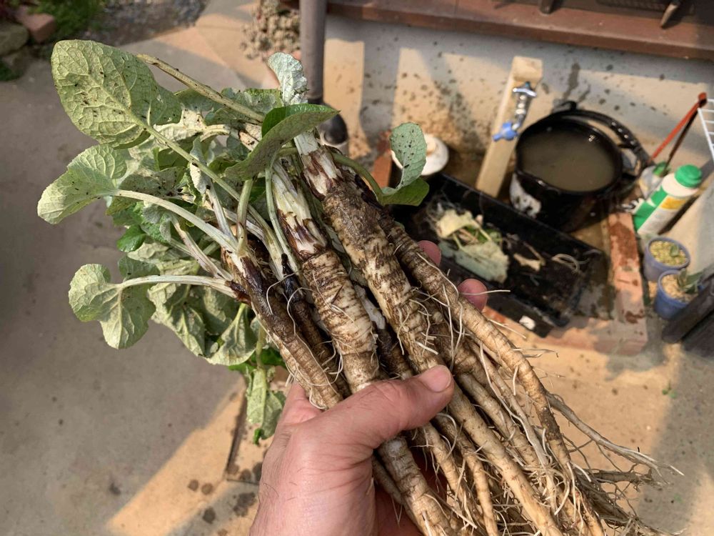 昨年9月に牛糞堆肥のビニール袋に土を詰めて短形ごぼうの種を蒔いていました。種蒔きの時期が遅れて小さなごぼうですが昨夜夕飯にいただきましたが凄く美味しかったです。