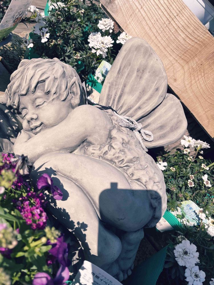お花屋さんにこんな気持ちよさそうにお昼寝してる妖精さんが!