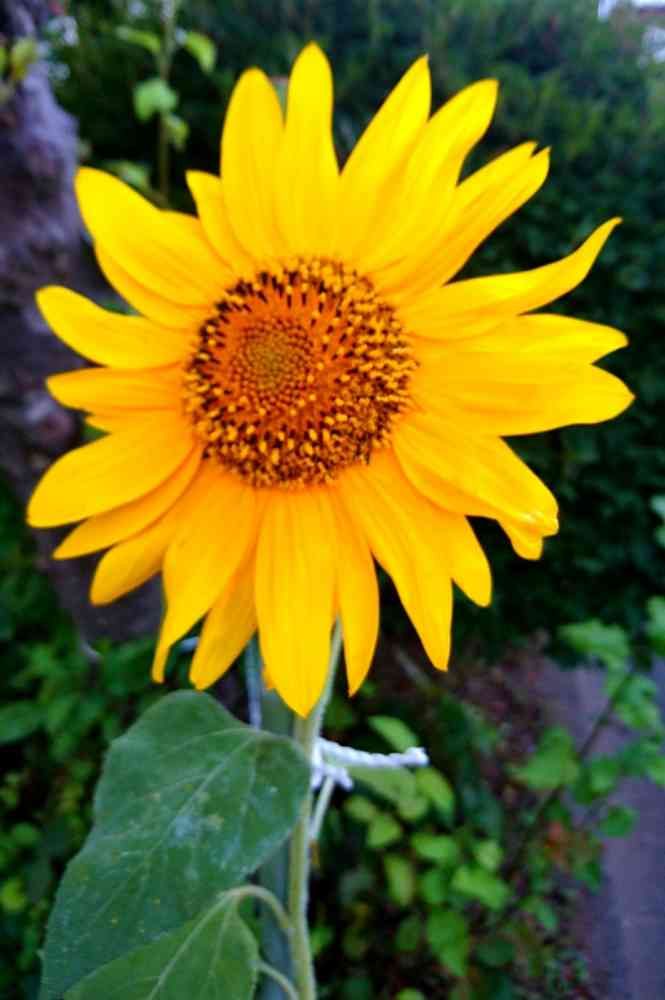 ☆マンションの庭に咲いています。曇り空ですが、ヒマワリはパッと明るくしてくれます。