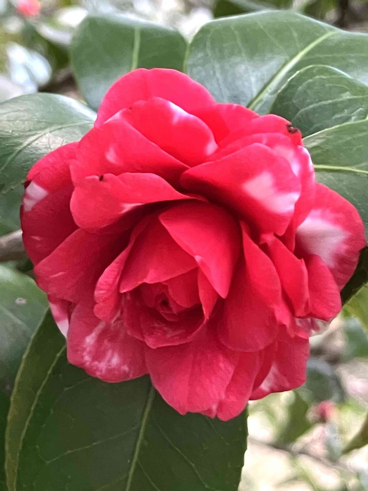 紅車、バイカラーの椿、とても美しいですね💓