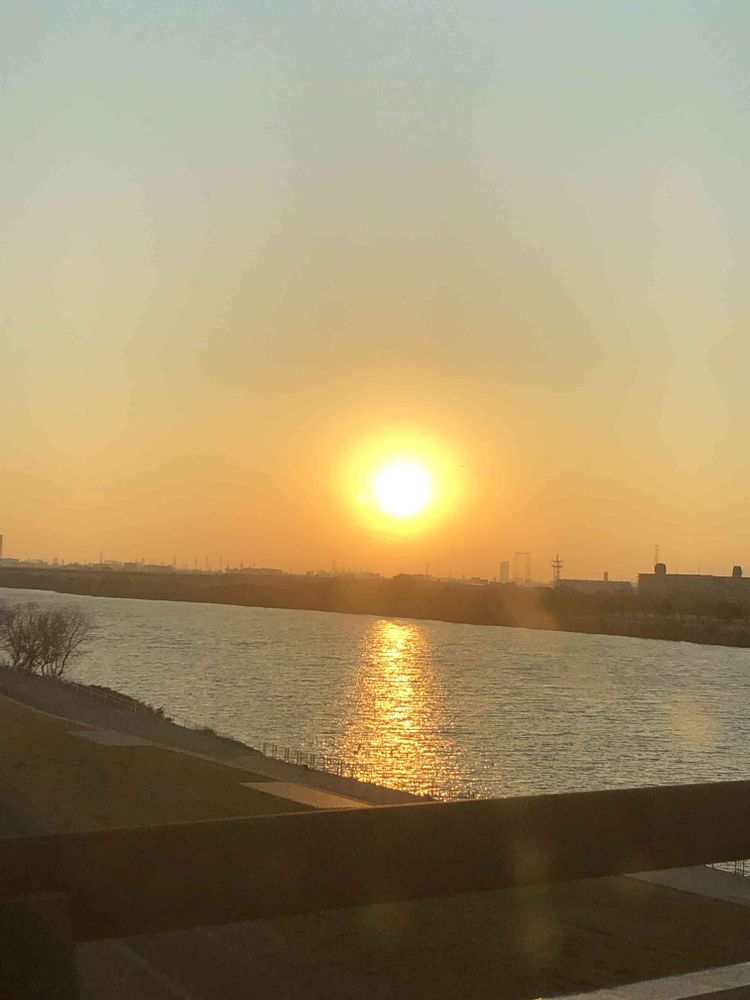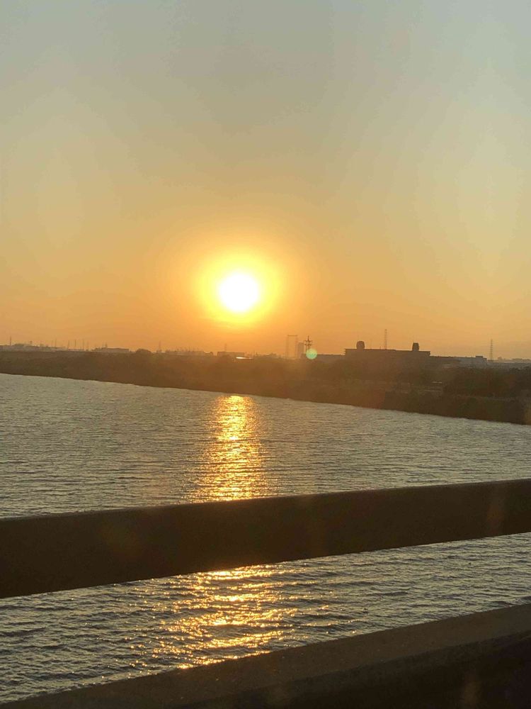 実家からの帰り道🛣️、淀川の橋から夕日が見えました。🌇🚙💨👌