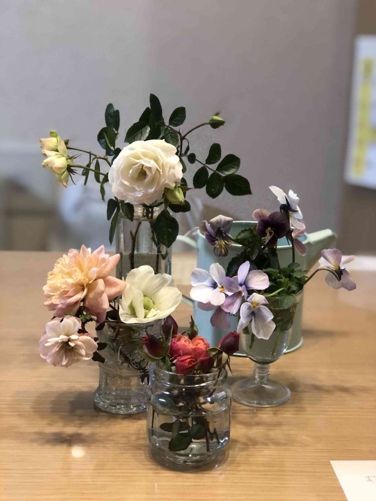 庭で育ててるお花だと茎が短いのも多いから、小さい花瓶が使いやすいよね!