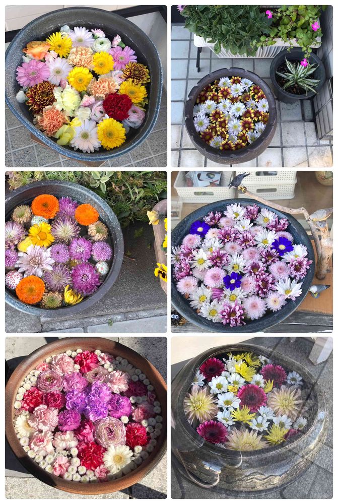 ずっと後になって、京都だかのお寺で手水にアジサイを浮かべて花手水と名付けたのが進化していきました。