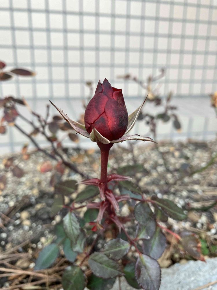 昨日、散歩中に発見。シックなバラ🌹、蕾にキュンっでした。