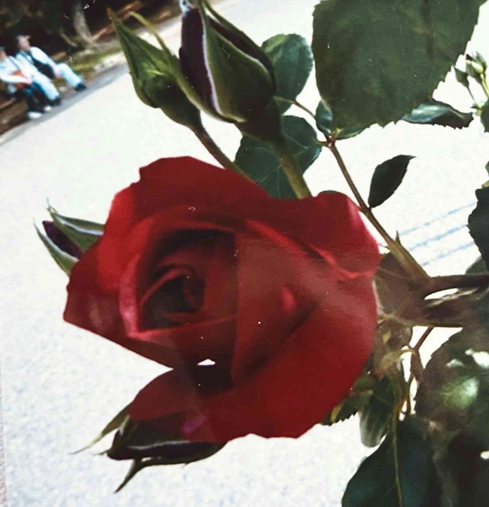 偶然に撮れたにしても背面にいらっしゃる仲睦まじいご夫婦の入ってしまいましてごめんなさい🙏と思いつつ廃棄しようとしたのですが、なんとなく赤いバラの花言葉を思い出して残しておいて良かったかも?なんて自己満足な構図になりました😉