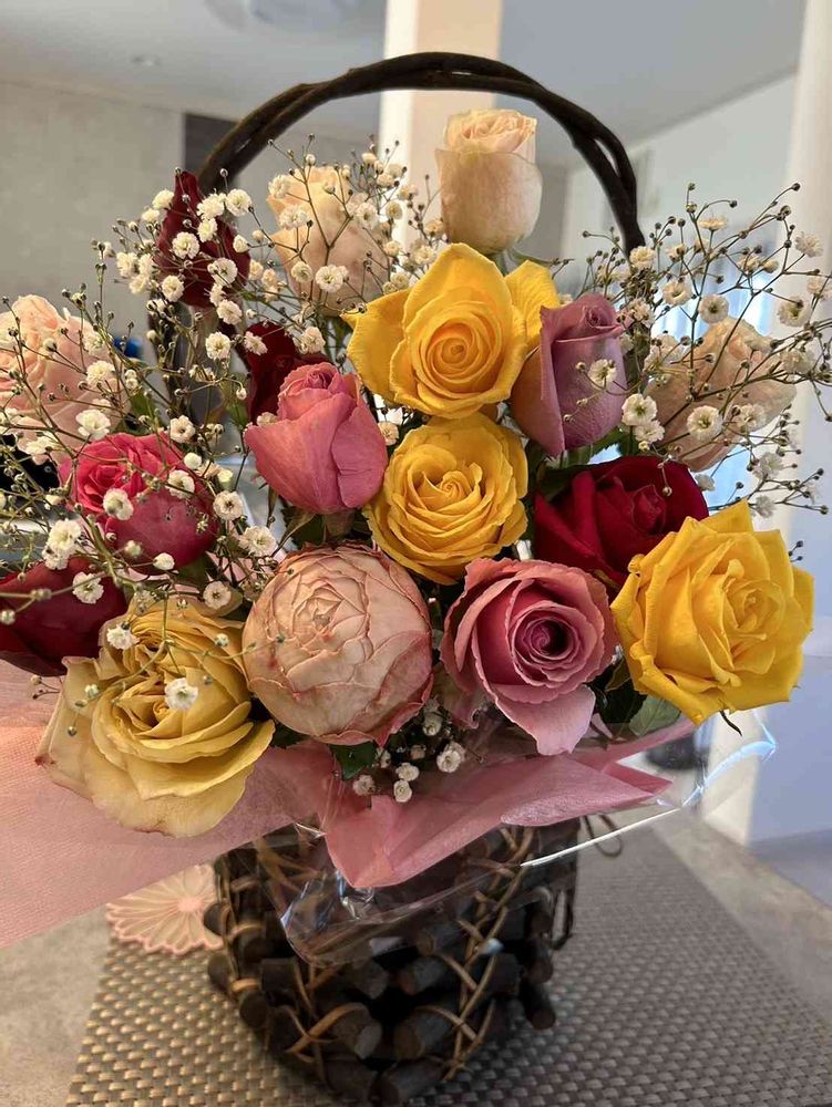 友達から送られてきたバラのアレンジメント🌹豪華なアレンジメントですね💖