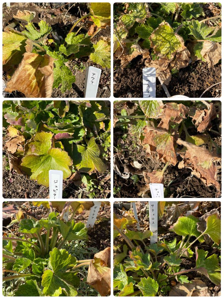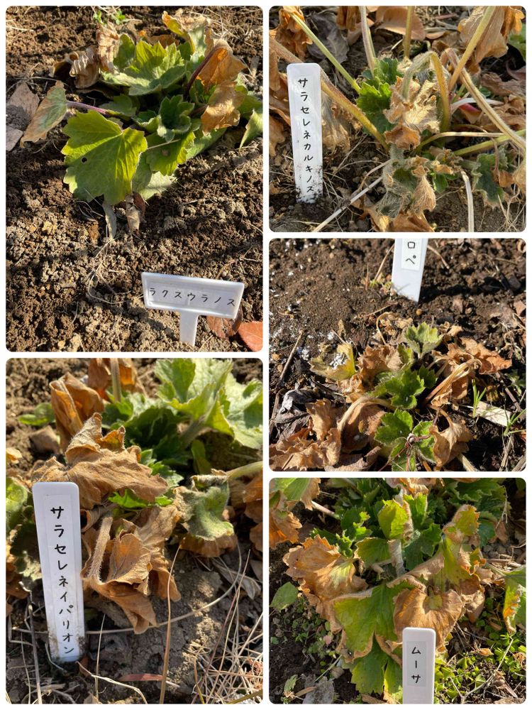 地植えのラックスやランドセルシリーズタグがわかるものだけ投稿します。今こんな感じです。クリスマスローズと一緒で枯れた葉は霜除けになるので見栄え悪いけどそのまま🍂