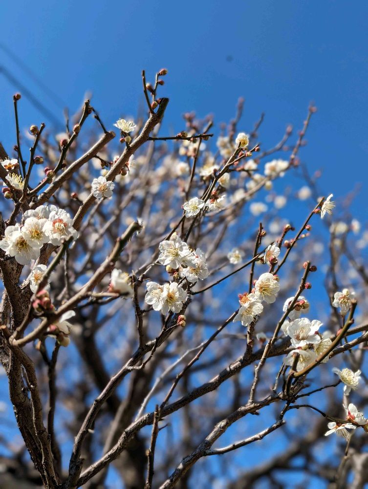 綺麗な青空に白梅が映えてるねぇ~💙💙💙🤍🤍🤍