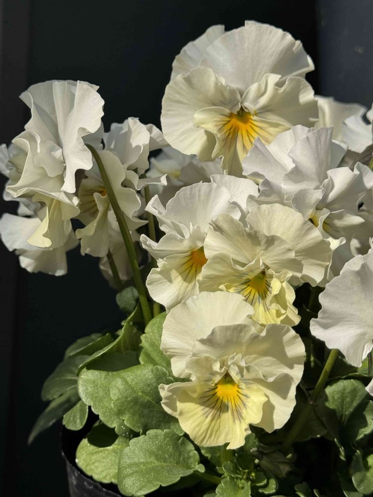 立派な株のパンジービオラが¥350 3つで¥1000で販売されていました。一緒に行った花友ちゃんと「もう増やさない」「もう買わない」と言いながらも どれも本当に素敵で…選びきれず4鉢!3鉢ではなく4鉢 !連れ帰りました。